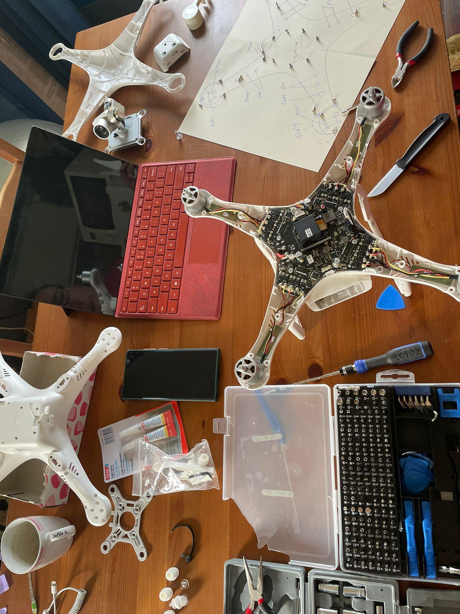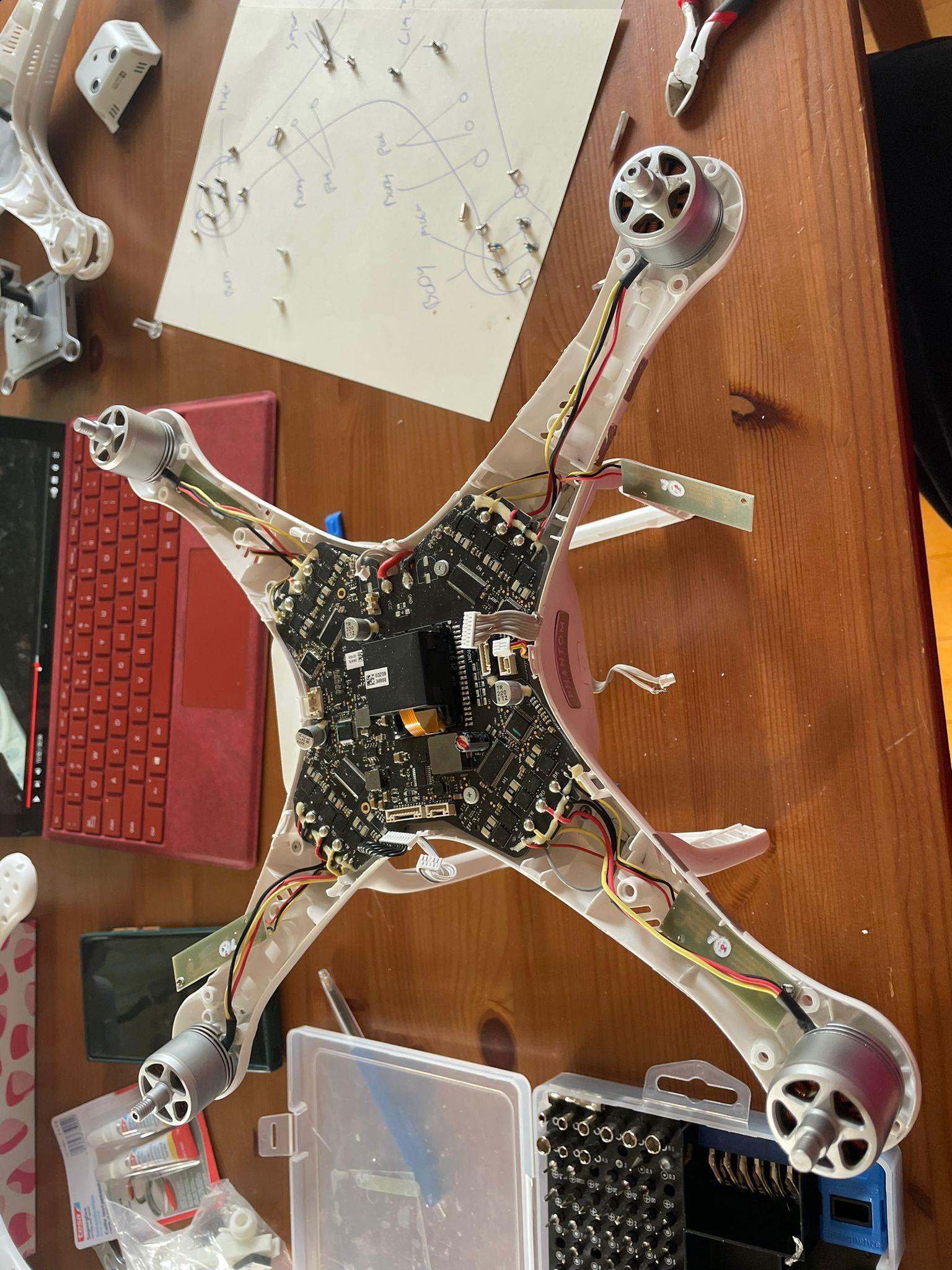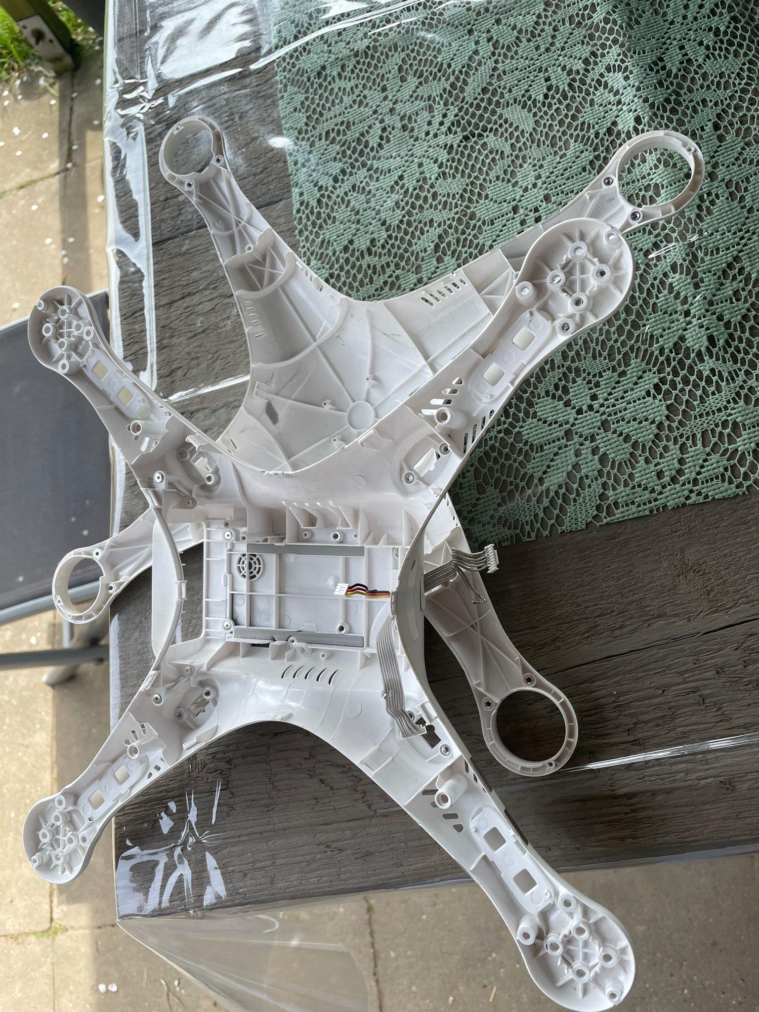 Omdat bij ons veiligheid voor plezier gaat hebben we besloten de body van deze drone volledig te vervangen. Dit was wat werk, maar geeft zoveel meer voldoening als je een drone hebt zonder schade. Aangezien de body's nog maar moeilijk zijn te krijgen is deze uit het buitenland ingevlogen. kosten nog moeite gespaard.